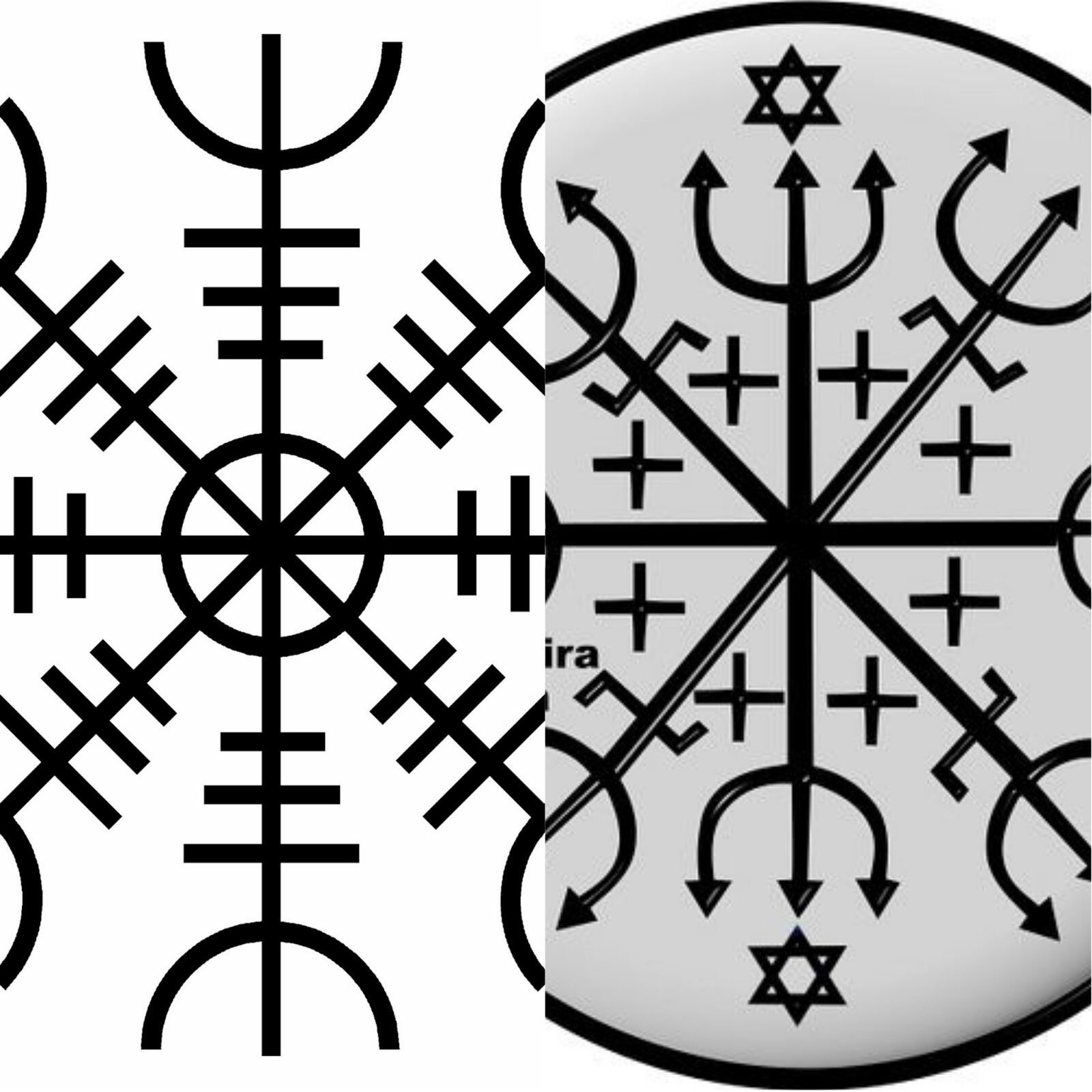 À esquerda, Ægishjálmur; à direita, o ponto riscado de Pomba Gira Menina